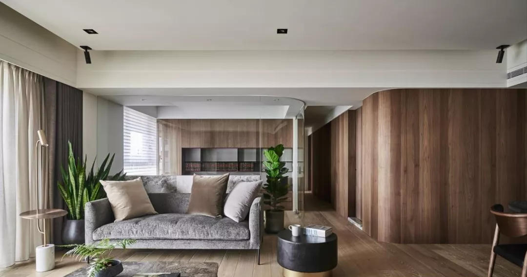 挑选黑胡桃、深色橡木、缅甸柚木或红山毛榉等等颜色比较深且纹理鲜明的木种作为空间基底,降低白墙的比例,添加如黑铁件、深色木柜和黑色类家具,凸显出的木纹就像是诱人的手炒黑糖浆一样,散发浓郁迷人的香气,让人想细细品味自然的甜。