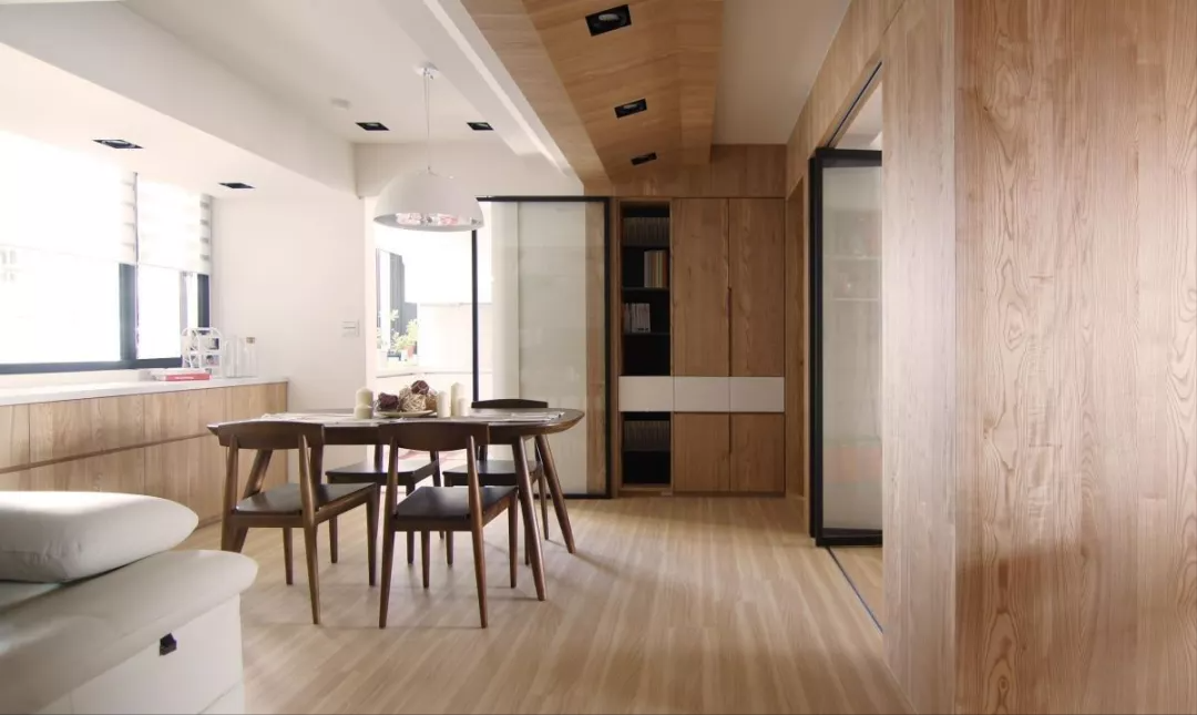 以白橡木或浅色类超耐磨木地板为基调,白墙和天花板填满空间上半部,搭配的家具也以浅色类、造型简单为主;适时添加一些翠绿色植栽或花束,淡淡的奶茶香衬托简单的摆饰,诠释天然纯粹的风格,享受无负担的生活空间。