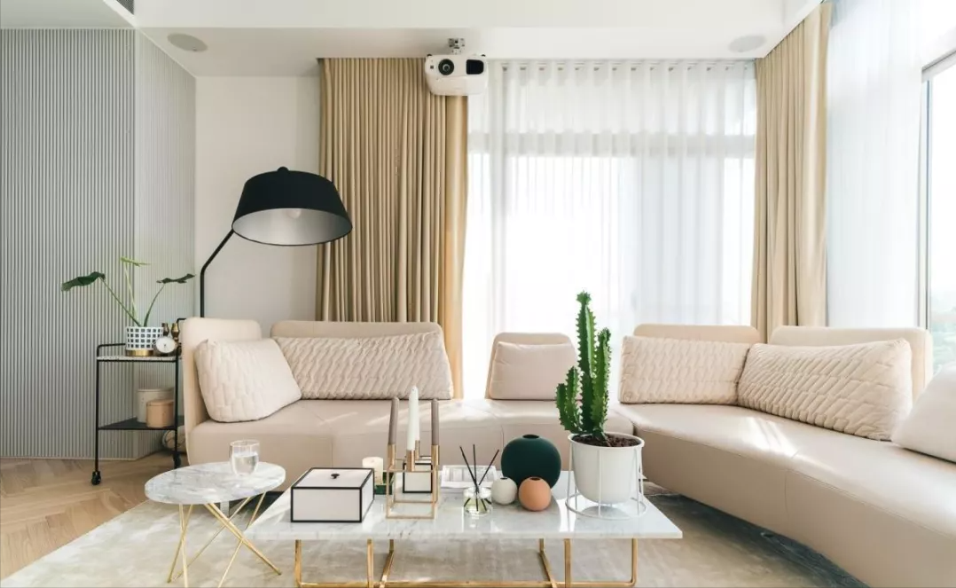透过浅木色、米色石材或者是皮革布料堆栈出裸色层次。空间中薄纱窗帘或风琴帘若隐若现的半透明感也让空间氛围显得更柔顺,像是豆奶的口感,喝下一口带着奶味与豆香。空间里选用白色、黄铜或原木的茶几就像是搭配白玉珍珠;而挑选黑铁、深木桌椅则如同黑珍珠,但不论哪种风味都能诠释豆奶类空间的魅力。