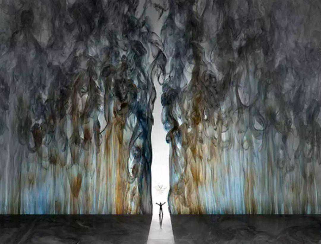 似梦非醒之间,灵谦主人忽闻得远方一僧一道口念含词,却欲往还无,大惊而醒,又见一驻杖道人立于巨石旁,及身后浓雾渐散,再见一僧,仔细瞧着,乃可辨其模样如宝而似玉,再欲往,却讶雄鸡唱䪨,怪梦初醒。灵谦主人凝霞久视,迟迟不归,终乃长吁曰:你梦我梦,梦中梦梦,是无有梦,梦何为梦,一场大梦!